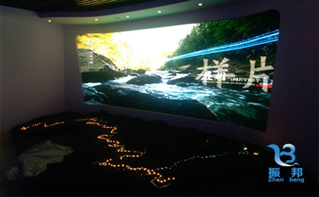 當(dāng)參觀者點(diǎn)擊想了解的區(qū)域,指定區(qū)域沙盤燈光亮起,通過控制系統(tǒng)弧幕播放相應(yīng)的影片,讓參觀者更加直觀的了解所傳達(dá)的信息。