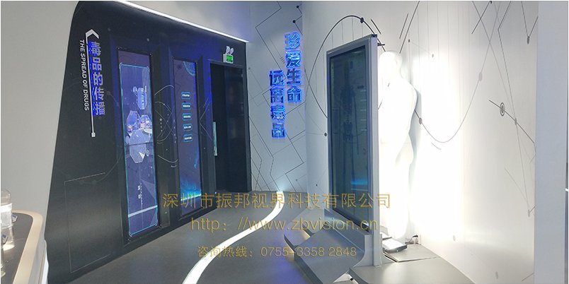振邦視界以滑軌屏展示歷使以來(lái)對(duì)禁毒工作的一個(gè)成效,當(dāng)滑軌滑動(dòng)到不同位置屏幕展示相關(guān)信息,包括圖片、文字、視頻等,是一種全新的互動(dòng)展示形式,可與觸摸同時(shí)使用。