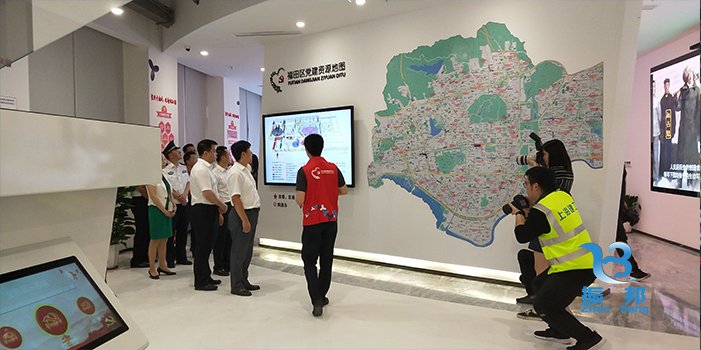 通過86寸液晶觸摸屏查看福田黨群資源地圖。