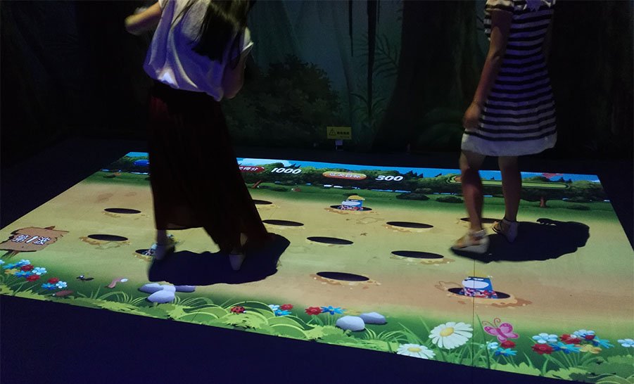 除了以上投影畫(huà)面,還有打桌球、舞臺(tái)跳舞等等,互動(dòng)投影的應(yīng)用可以說(shuō)是千姿百態(tài),讓人們體驗(yàn)到比真實(shí)世界更加有趣的東西。互動(dòng)投影技術(shù)是融合三維全景虛擬仿真和動(dòng)感捕捉技術(shù),加上地面互動(dòng)投影、背投互動(dòng)投影、桌面互動(dòng)投影、墻面互動(dòng)投影等展示方式。讓人們?nèi)我馊ミx擇展示形式來(lái)達(dá)到效果。應(yīng)用領(lǐng)域有:商場(chǎng)、展覽館、科技館、舞臺(tái)表演等等