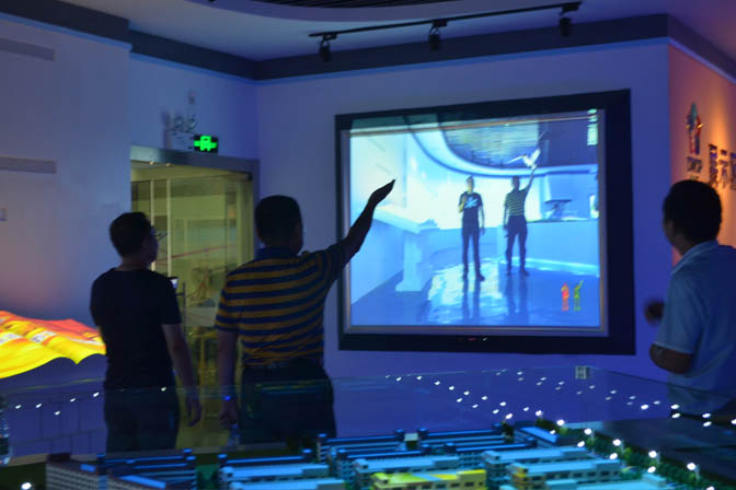 開園當日,寶安區(qū)副區(qū)長胡細銀、中糧智匯創(chuàng)新園總經(jīng)理穆林等在振邦視界總經(jīng)理徐志偉的帶領(lǐng)下,攜innobank創(chuàng)意銀行、深圳市南山海歸聯(lián)誼會眾創(chuàng)空間、中山大學(xué)、華南理工大學(xué)創(chuàng)客基地等9家首批落戶企業(yè),以及來自知名創(chuàng)客圈、智能硬件圈、孵化圈、資本圈、金融圈、平臺圈、媒體圈、公共服務(wù)平臺等近50家單位的代表參觀了由我司與中糧福安公司聯(lián)合打造的硬件體驗中心。其間,受邀嘉賓對所展出的虛擬迎賓,全息成像、投影融合、地面互動、電子簽名、多點觸控、滑軌電視等數(shù)套多媒體數(shù)字展廳新技術(shù)贊不絕口,暢游在互動體驗的樂趣中,感受科技與空間藝術(shù)的完美結(jié)合。