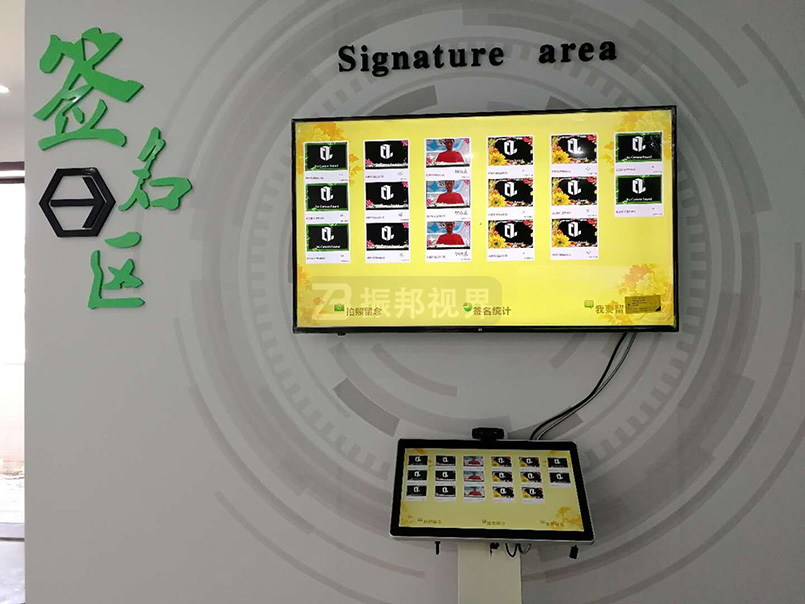 基礎版-簽名拍照互動系統(tǒng)是由專業(yè)高清攝像機、觸摸一體機及互動控制系統(tǒng)構成,主要用在展館展廳為參觀者拍照留言。