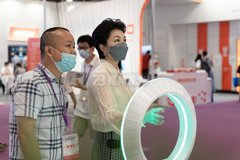 3. 發(fā)光手環(huán)待機時會呈現(xiàn)呼吸燈的燈效,吸引體驗者前來體驗,當手進入發(fā)光圈手勢識別區(qū)后,每一種不同的手勢都會伴隨有不同的發(fā)光圈燈效,以提高體驗感;
