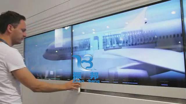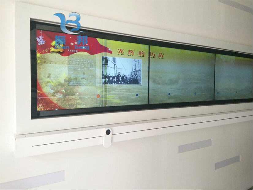 什么是滑軌多聯(lián)屏互動系統(tǒng) 滑軌多聯(lián)屏互動系統(tǒng),又稱為滑軌電視、滑軌播放等,通過特殊設(shè)計的機械滑軌控制裝置,結(jié)合高清液晶拼接幕墻,實現(xiàn)對屏幕內(nèi)容的互動控制,滑動到不同位置屏幕展示相關(guān)信息,包括圖片、文字、視頻等,是一種全新的互動展示形式,可與