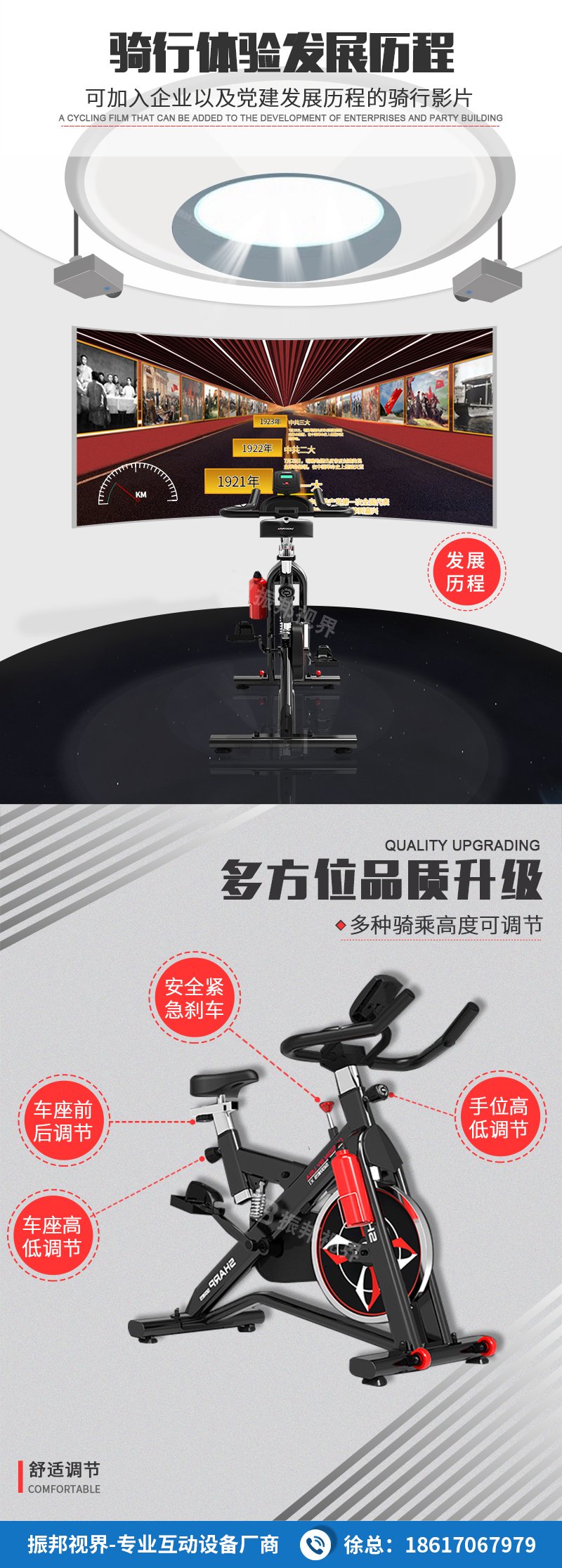 產(chǎn)品簡介:互動單車是振邦視界推出的一款虛擬騎行互動產(chǎn)品,與傳統(tǒng)的動感單車相比,它擁有真實場景影像,通過投影或液晶屏的顯示方式,自由選擇你想騎行的景點路線和場景,體驗漫游騎行之旅。