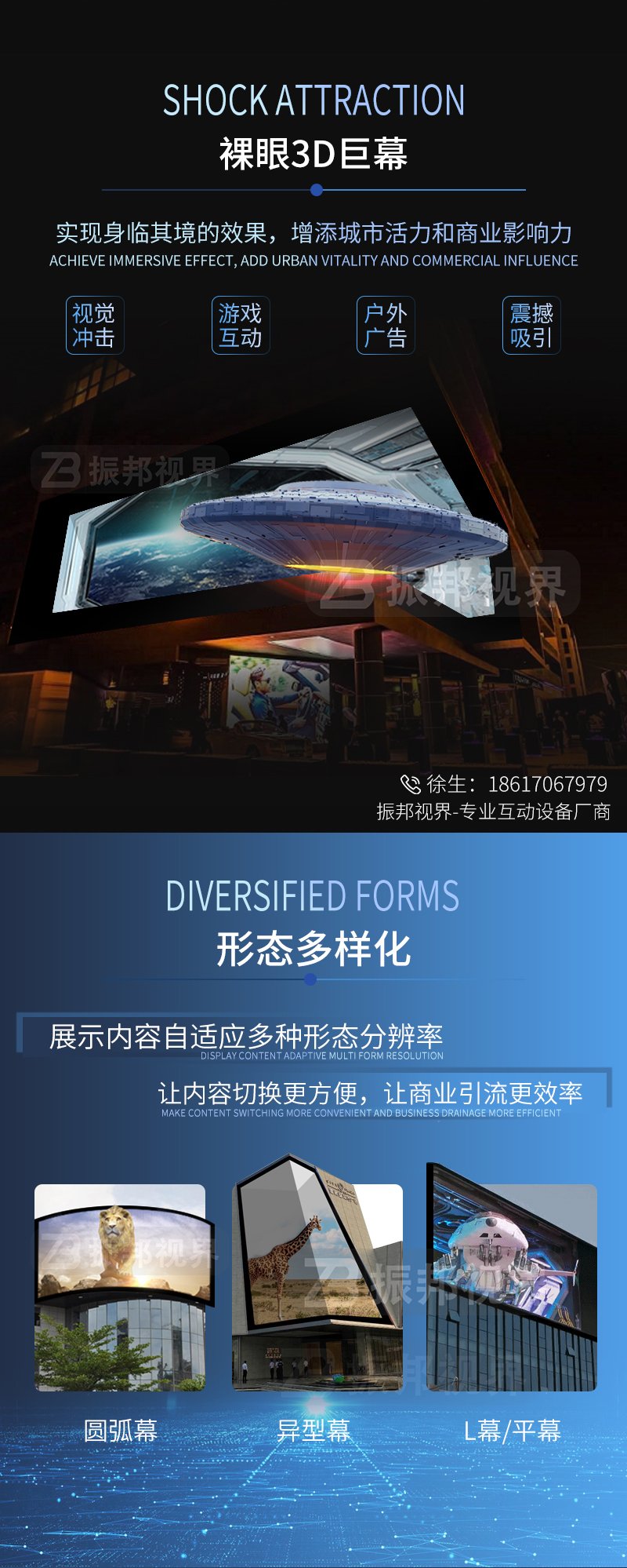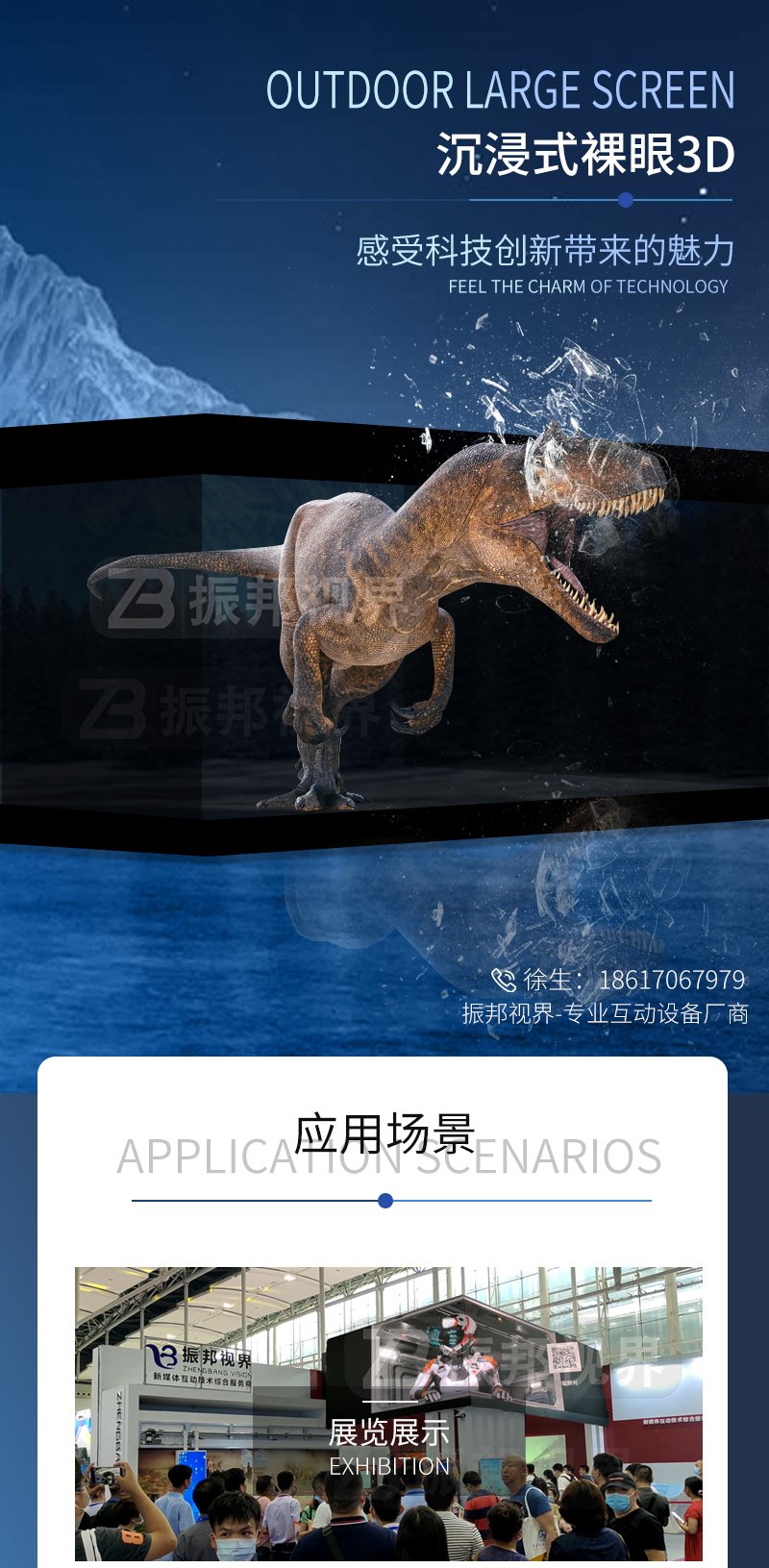 產(chǎn)品簡介:深圳振邦視界最新推出了裸眼3D互動巨幕,該展項打破了常規(guī)的展覽形式,不僅能帶來震撼的沉浸感,圍觀的群眾站在巨幕下面,還可和其進(jìn)行互動拍照并傳至影幕上,非常有趣。