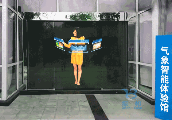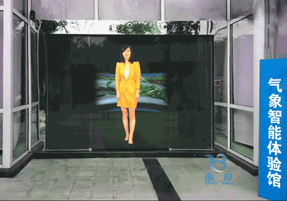 虛擬迎賓,又稱虛擬解說員、虛擬主持、虛擬播音員,是全息投影中的一種,虛擬出逼真的人物形象,當參觀者走到感應(yīng)區(qū)域時,互動感應(yīng)系統(tǒng)會將導覽員形象投射在特種玻璃屏幕上,形成科幻電影般的空間形象,歡迎來賓光臨,為參觀者介紹展館的主題分布及特色展區(qū)。