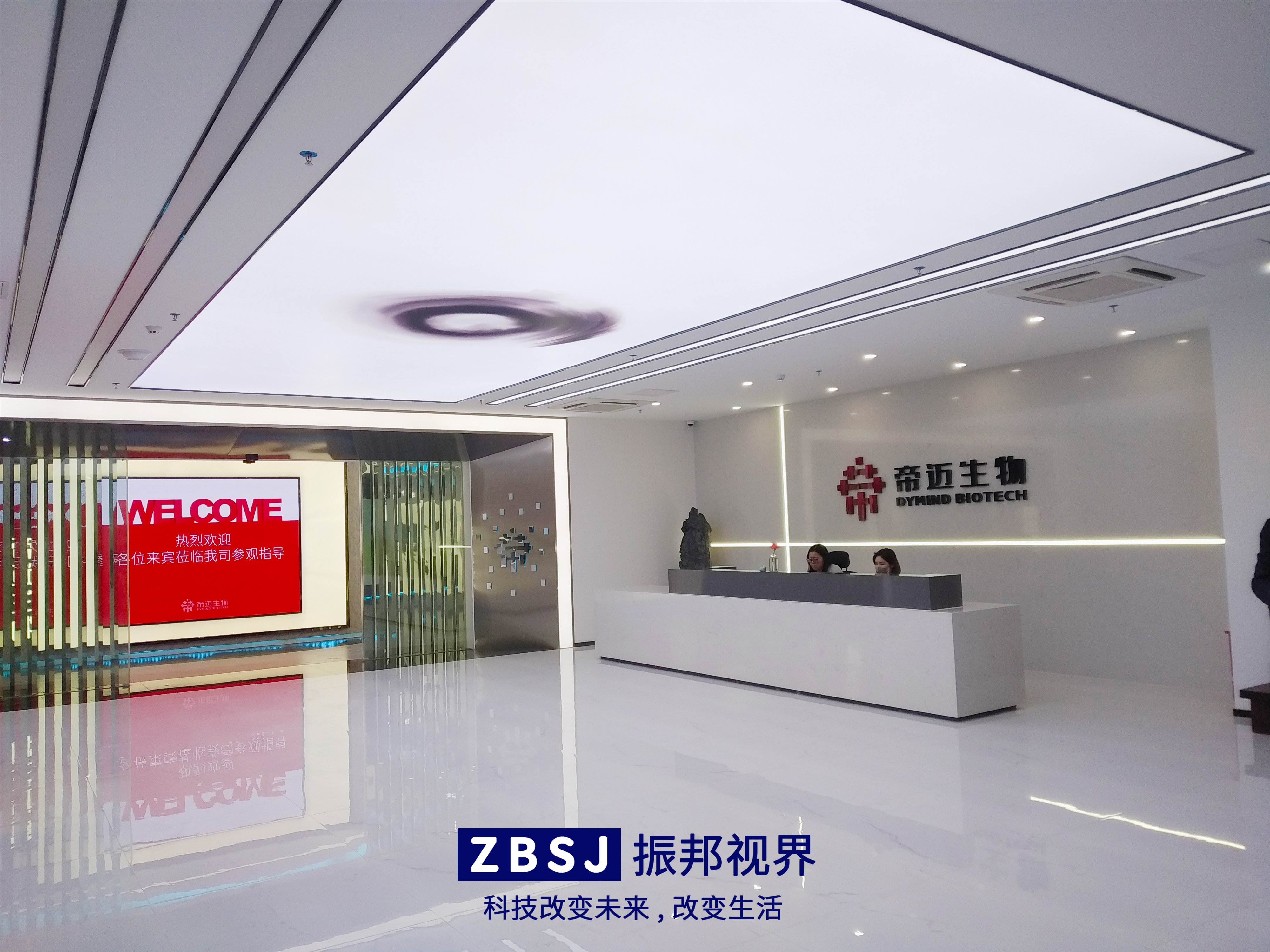 進(jìn)入展廳大門,是一個(gè)LED大屏幕,上面顯示著帝邁生物企業(yè)展廳的參觀迎賓語。