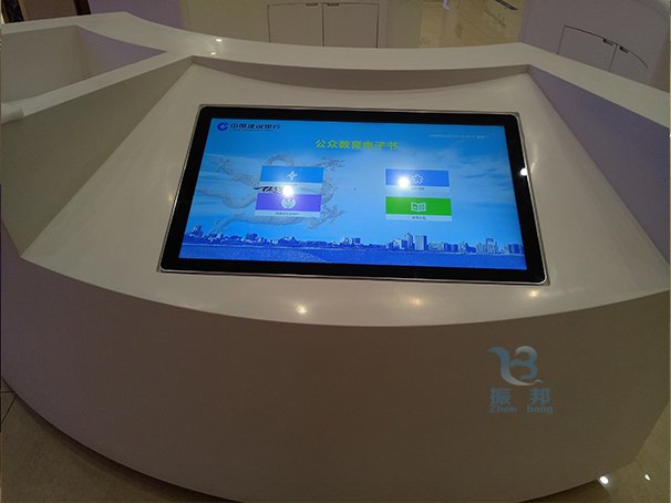 借助大屏幕顯示設(shè)備圖形圖像模型顯示到屏幕上,參觀者以自然的手勢動(dòng)作與大屏幕圖像交互作用,多方位多層次瀏覽查詢,從而快速地獲取簡明、精確、優(yōu)美、逼真的動(dòng)態(tài)信息。用戶可在等號(hào)時(shí)自主查詢銀行發(fā)布的最新動(dòng)態(tài),以及業(yè)務(wù)導(dǎo)覽。