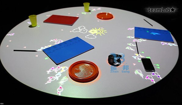 投影在桌面,參與者與桌面內(nèi)容進行互動,主要展現(xiàn)一些益智類型小游戲等。