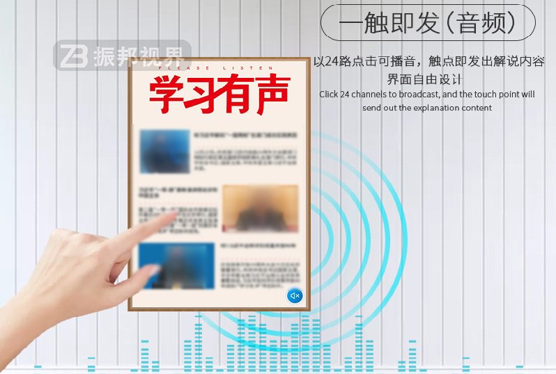 更新時間:2020-09-30 關注度:7276藝術(shù)互動畫框是深圳振邦視界研發(fā)的一款創(chuàng)意互動裝置,外形為普通畫框,內(nèi)置觸控感應發(fā)聲裝置,當有人用手觸擊其畫框展板上的符號標識模塊,就能使其播報語音...查看詳細>>
