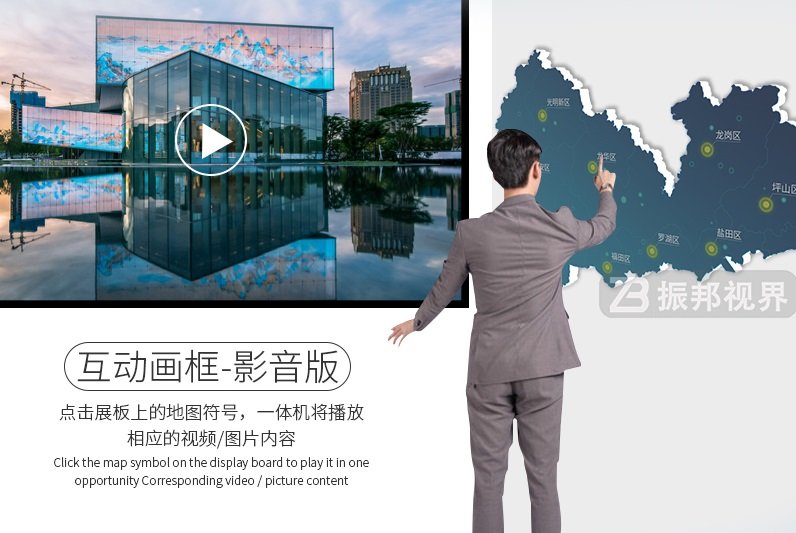 更新時間:2020-09-30 關注度:7392互動畫框是深圳振邦視界研發(fā)的一種通過觸控展板進行內(nèi)容點播的新型互動裝置,他分為有聲版和影音版,接下來,多媒體互動技術(shù)解說員振邦視界帶大家一起來了解...查看詳細>>