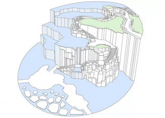 “設(shè)計(jì)的關(guān)鍵是使用在傳統(tǒng)中式園林中的文化參照”,約翰遜說(shuō)。“通過(guò)與場(chǎng)地的融合,這種建筑代表了人類與自然的和諧,是中國(guó)藝術(shù)和設(shè)計(jì)基本元素的一個(gè)抽象化體現(xiàn)。”