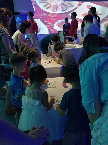 好奇地體驗(yàn)地面互動“荷塘月色”帶來的神奇效果