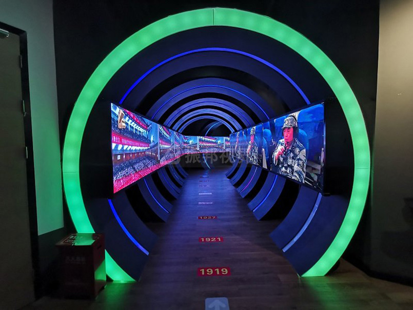 時光隧道是指由投影、LED或液晶拼接顯示幕墻組成的隧道形顯示幕墻,讓人身臨其境的體驗穿梭于時間長廊的視覺效果。