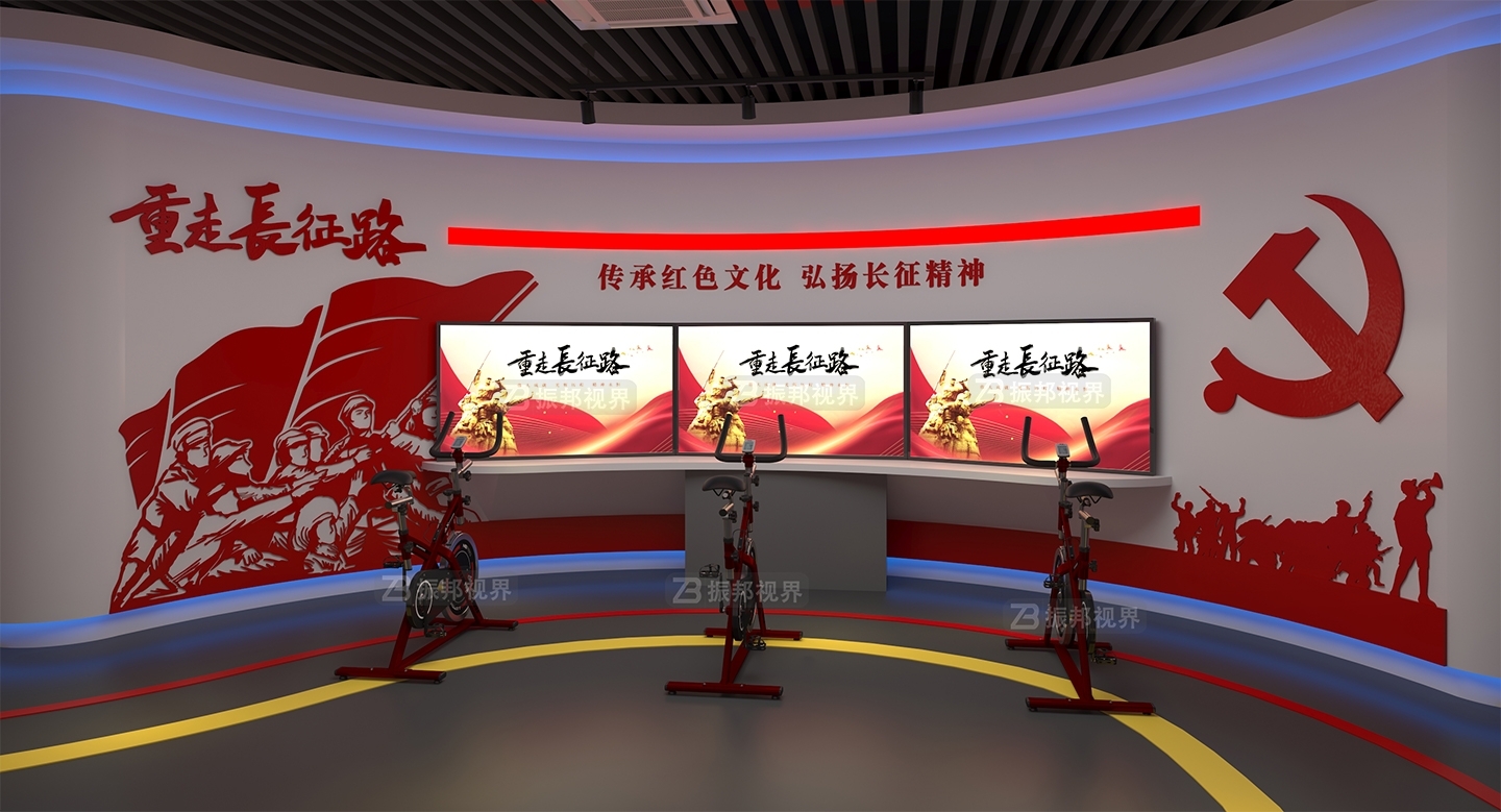 重走長征路版-AR互動系統(tǒng)由AR 互動單車、顯示幕墻及控制系統(tǒng)組成,系統(tǒng)通過3D立體場景建模技術真實還原了紅軍長征路上的血戰(zhàn)湘江、遵義會議、四渡赤水、飛奪瀘定橋、爬雪山、過草地的六大場景,體驗者通過虛擬騎行身臨其境的體驗重走長征路,每體驗完一個場景,系統(tǒng)自動出10道題,體驗者限時答題,體驗完成系統(tǒng)自動生成成績排行榜,可以局域網(wǎng)組團競技,體驗者可直接通過微信賬號登錄,成績跟微信賬號關聯(lián)計入全國排名。