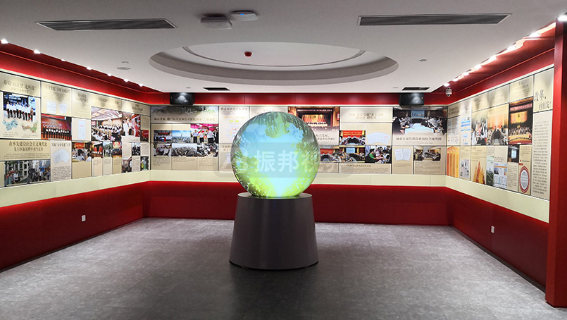 球幕系統(tǒng)主要由無縫內(nèi)投球幕、投影設(shè)備、專用結(jié)構(gòu)及控制系統(tǒng)構(gòu)成,顯示呈球形畫面,可以帶觸控功能,配合不同的顯示幕墻做擴(kuò)展屏,作地球區(qū)位展示或分支機(jī)構(gòu)展示。