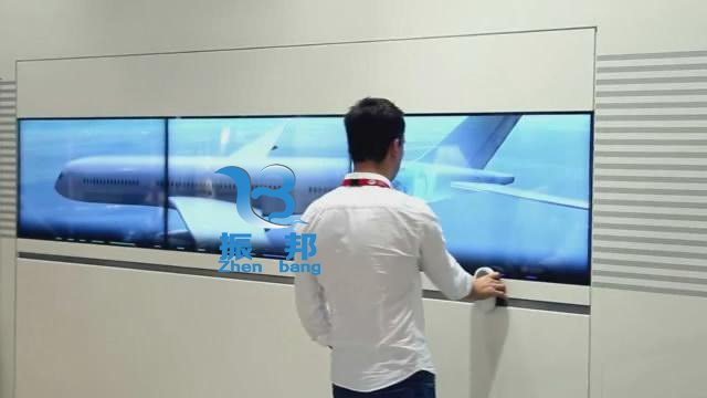 產(chǎn)品簡介:什么是滑軌多聯(lián)屏互動系統(tǒng) 滑軌多聯(lián)屏互動系統(tǒng),又稱為滑軌電視、滑軌播放等,通過特殊設(shè)計的機械滑軌控制裝置,結(jié)合高清液晶拼接幕墻,實現(xiàn)對屏幕內(nèi)容的互動控制,滑動到不同位置屏幕展示相關(guān)信息,包括圖片、文字、視頻等,是一種全新的互動展示形式,可與