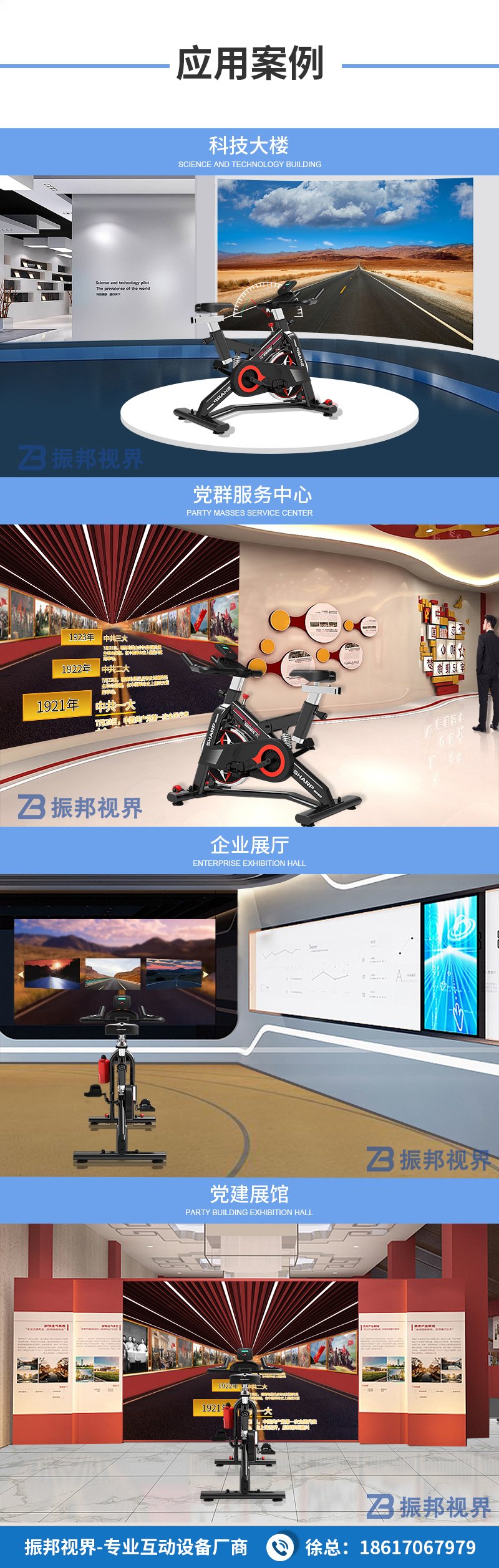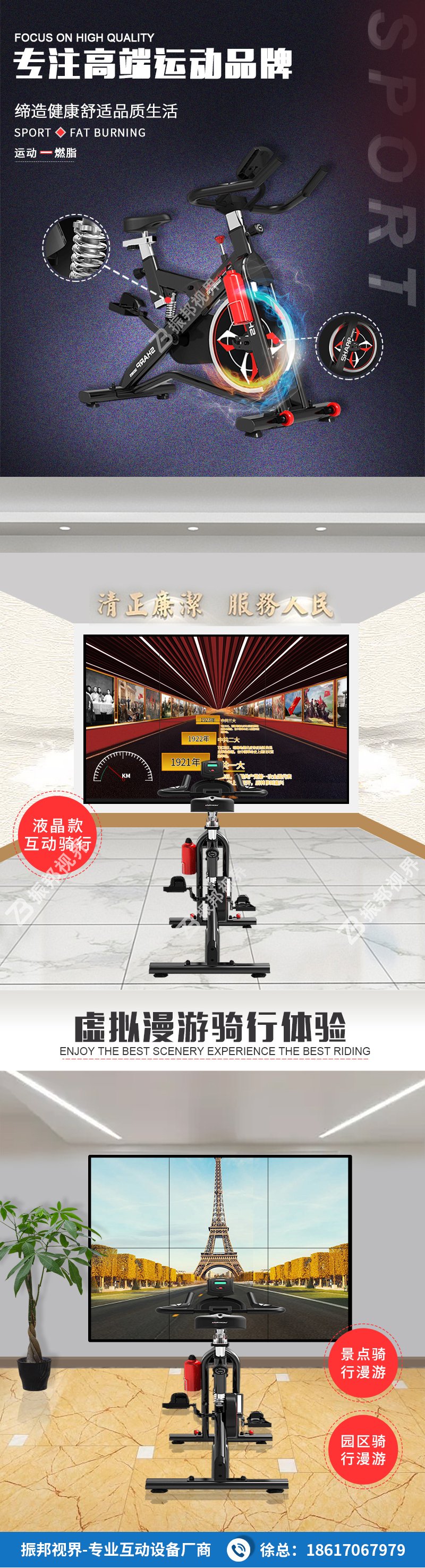 產(chǎn)品簡介:互動單車是振邦視界推出的一款虛擬騎行互動產(chǎn)品,與傳統(tǒng)的動感單車相比,它擁有真實場景影像,通過投影或液晶屏的顯示方式,自由選擇你想騎行的景點路線和場景,體驗漫游騎行之旅。
