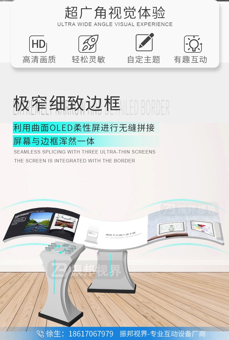 深圳振邦視界最新研發(fā)的大鵬展翅旋鈕互動(dòng)產(chǎn)品由OLED曲面柔性屏+旋鈕感應(yīng)系統(tǒng)組成??商砑佣鄠€(gè)感應(yīng)模塊內(nèi)容,無(wú)縫銜接的超精細(xì)工藝,讓展覽展示交互體驗(yàn)更加完美!