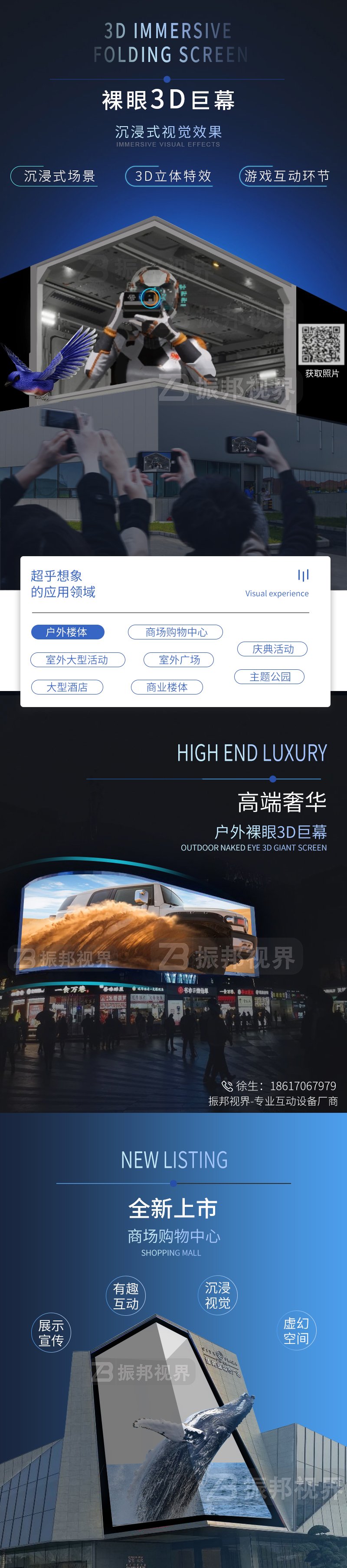 深圳振邦視界最新推出了裸眼3D互動巨幕,該展項打破了常規(guī)的展覽形式,不僅能帶來震撼的沉浸感,圍觀的群眾站在巨幕下面,還可和其進(jìn)行互動拍照并傳至影幕上,非常有趣。