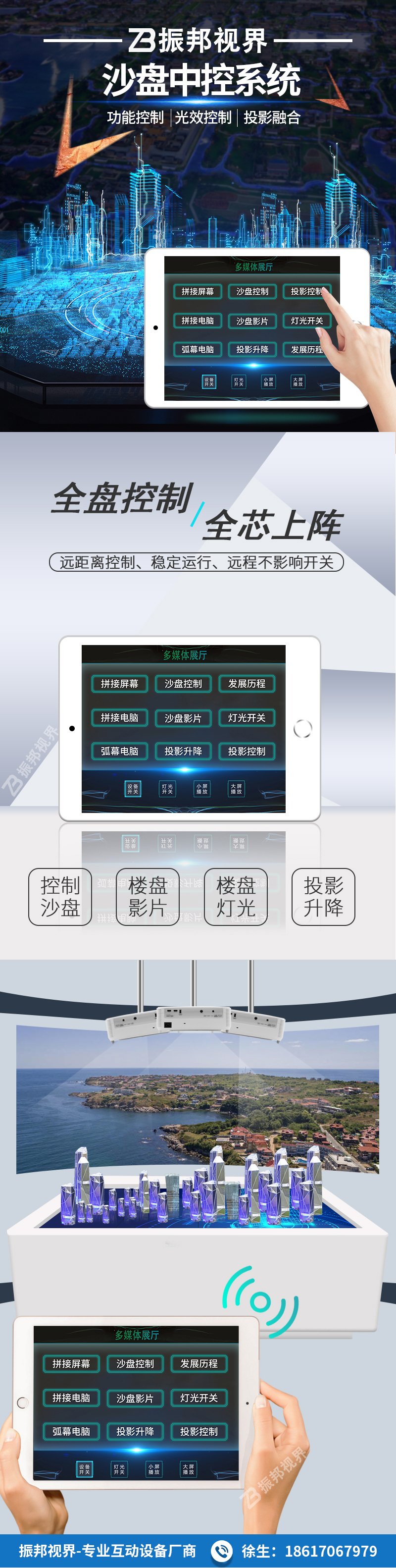 -多種控制方式可定制選擇、可在沙盤內(nèi)置中控觸摸屏、及外置觸控屏和平板中控。