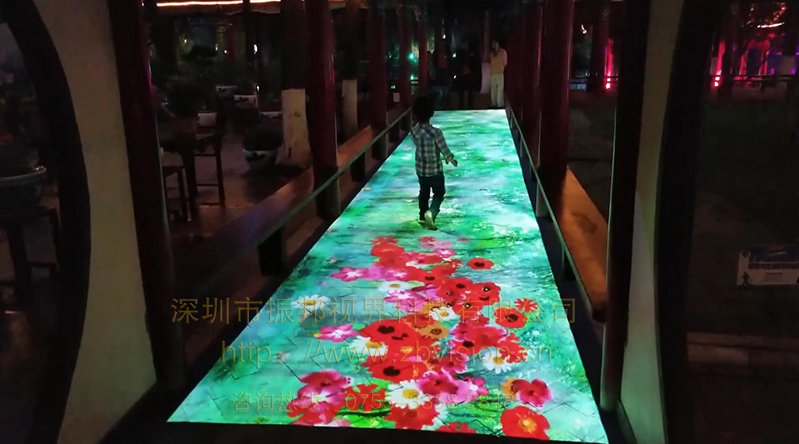 地面互動投影可以將任意一塊平淡無奇的地板區(qū)域變成炫酷高科技實時交互的神奇之地。是參與者和地面上影像的真實互動,使多名參與者融入場景中,同時參與游戲。