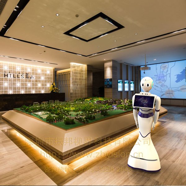 機器人配合3D視覺,看到來訪人員會主動打招呼,啟動智能迎賓;由自身攜帶的蓄電池,實現(xiàn)識別和躲避障礙物自主行走;語音講解,輔以圖片、視頻等補充介紹,使內容更生動;自助語音問答,語音控制機器人的移動、肢體動作以及其他表演功能;智能控制,可作為展廳中控,語音控制系統(tǒng)開關機(投影機、服務器、燈光等)。