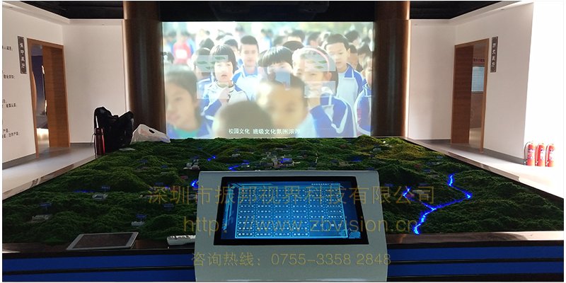 通過觸摸一體機+沙盤模型,點擊觸摸機上的學校名稱按鈕,大屏幕將播放該學校的相關信息,及在沙盤上該學校建筑模型燈光會亮起,方便參觀者一眼能識別到該學校的位置,及建筑風格。